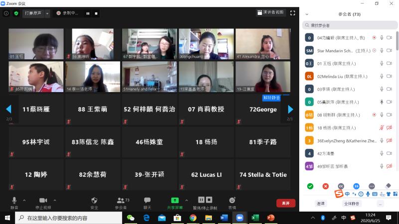 踏着美妙的歌声,我们揭晓了每个比赛项目的获奖者们,并对所有表演者和观众们表示感谢,同时致谢联欢会的评委会和筹备小组的老师们,大家辛苦了!最后,本场历时2个半小时的网络联欢会在孩子们的一段诗词联唱中结束。我们相约7月16日孔院青少年部《星星之火》系列联欢会的第二场——《博学篇》,即《星星之火- 教学杯成果展示》。
