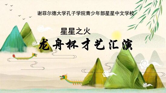 艾叶飘香又端阳,百舸争流竞九江。6月25日,农历五月初五,时逢中国的传统佳节,端午节。为了庆祝这个节日,激发孔院师生防疫抗疫的正能量,展现学生们的优秀才艺,谢菲尔德大学孔子学院特此举办了网络联欢会《星星之火-龙舟杯才艺汇演》。观看此次线上端午才艺赛的观众包括孔院教职员、青少年部的全体老师以及近100多个家庭的家长和学生们。