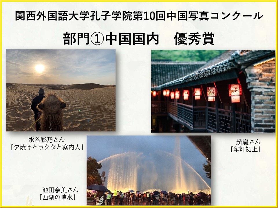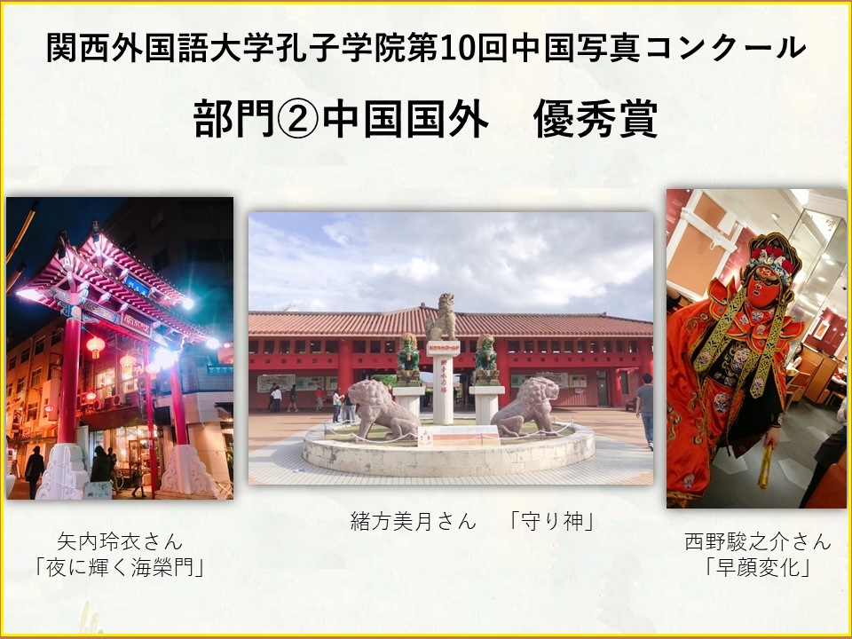 由于疫情的影响,为防止感染,今年首次将作品放在网上进行展示投票。网络的形式可以随时随地观看欣赏,非常地方便。根据投票数和孔子学院摄影大赛评审委员会的审查,评选出了最优秀作品奖、优秀作品奖和佳作奖,获奖作品共计20幅。此外,本次摄影大赛还为参与投票且投票作品获奖的推荐者特设推荐奖,以感谢大家的积极参与和大力支持。