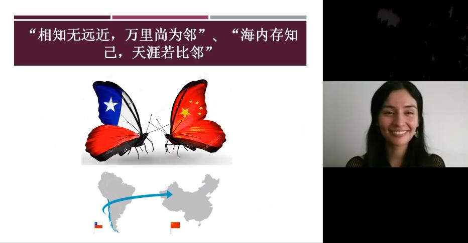 智利是世界上离中国最远的国家之一,而来自智利的罗琳同学却用她精彩的演讲诠释了“相知无远近,万里尚为邻”这句古诗词。罗琳围绕着“智利人眼中的中国人”这一主题,分享了她眼中曾经的与现在的中国印象。她表示,因为电影、交流不畅等原因导致智利人对中国人有一些刻板印象,但她通过自己在中国的学习与生活经验证明了中华民族是勤劳勇敢的民族。罗琳认为,“全球青年汉学家线上工作坊”这样的活动对于增进彼此了解十分重要。尽管目前因为疫情无法见面,但却提供了一个可以在线上交流、学习的宝贵平台。最后她用孔子的思想肯定了文化交流的重要性,“教育产生自信,自信产生希望,希望产生和平”。陈克禄老师对罗琳的演讲给予了很高的评价,他评价道:“罗琳的演讲非常有趣,条理清晰有逻辑,并且引用中国的诗词让自己的表达更加丰富。”董洁琼老师希望罗琳在日后的学习中可以更加注意发音吐字,带来更精彩的表现。
