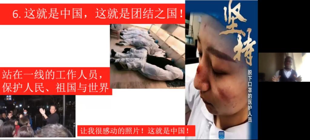 来自贝宁的莱昂在演讲中分享了因汉语改变人生轨迹,开启精彩人生的故事。他以一曲朗朗上口的《大中国》开始了演讲,声情并茂的演讲受到了评委老师的高度评价,并获得了阵阵掌声。在莱昂的心中,中国是发明之国、是伟大人物之国、是有梦想之国、是彻底脱贫之国、是团结之国。他表示,让更多人领略汉语的魅力、传播中国文化是他的梦想,也是他未来努力的方向。张秀红老师认为莱昂的演讲声情并茂、饱含深情,十分具有感染力,他抑扬顿挫的语气、徐急有间的演讲节奏紧紧地抓住了每一位听众的的情绪,让大家沉浸其中。李金莲老师在点评时也指出,莱昂的演讲表现出了青年汉学家高超的演讲水平,内容既有对中国印象的宏观概括,也有自己对于中国的观察,通过莱昂的演讲也让她对中国有了新的了解。