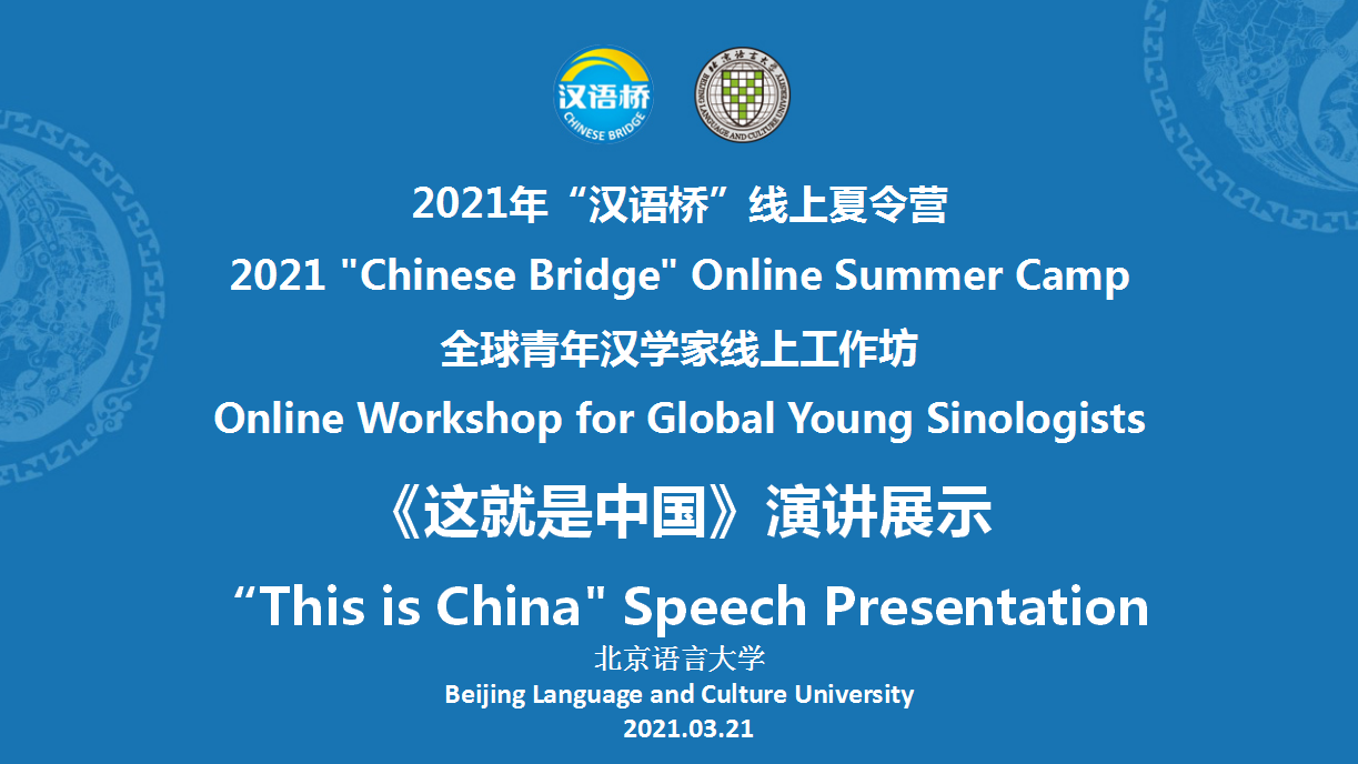 近日,由教育部中外语言交流合作中心主办,北京语言大学承办的“汉语桥”线上夏令营——“青年汉学家线上工作坊”《这就是中国》主题演讲活动圆满举行。