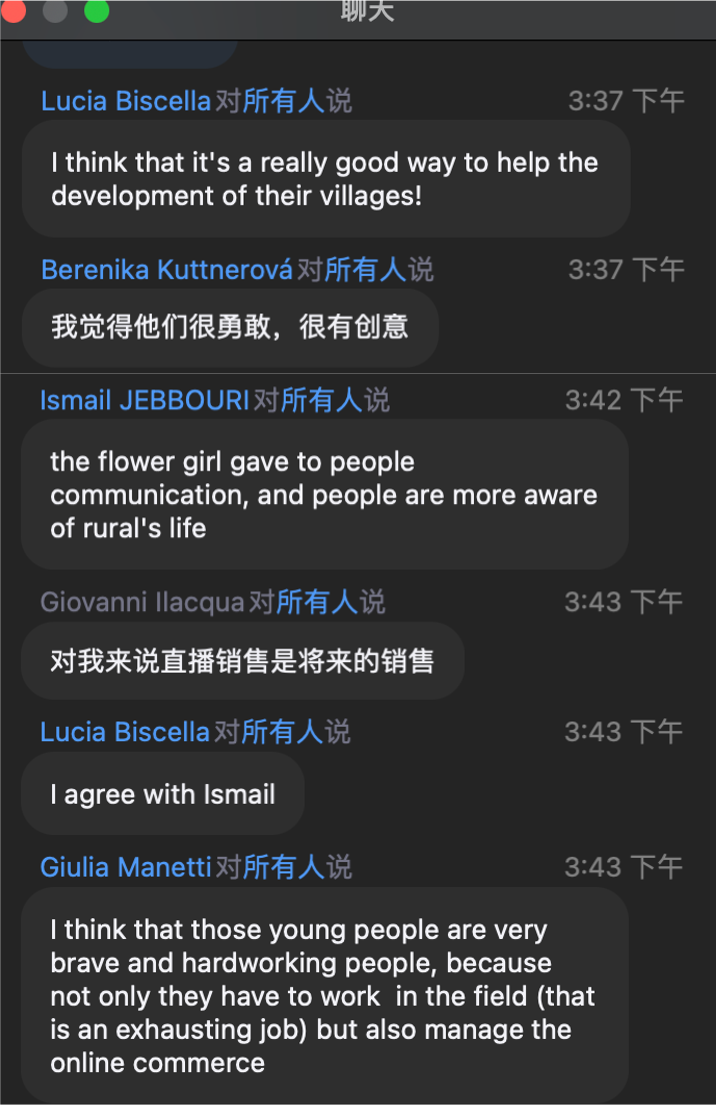 来自罗马尼亚的学生贝利妮卡(Berenika Kuttnerová),在中国有短暂的学习经历。疫情爆发时她从中国出发多次转机回到家乡。在中国机场她得到了陌生中国人的帮助。在学习抗击疫情的系列课程时,贝利妮卡动情地同大家分享了这件让她感动到流泪的故事。