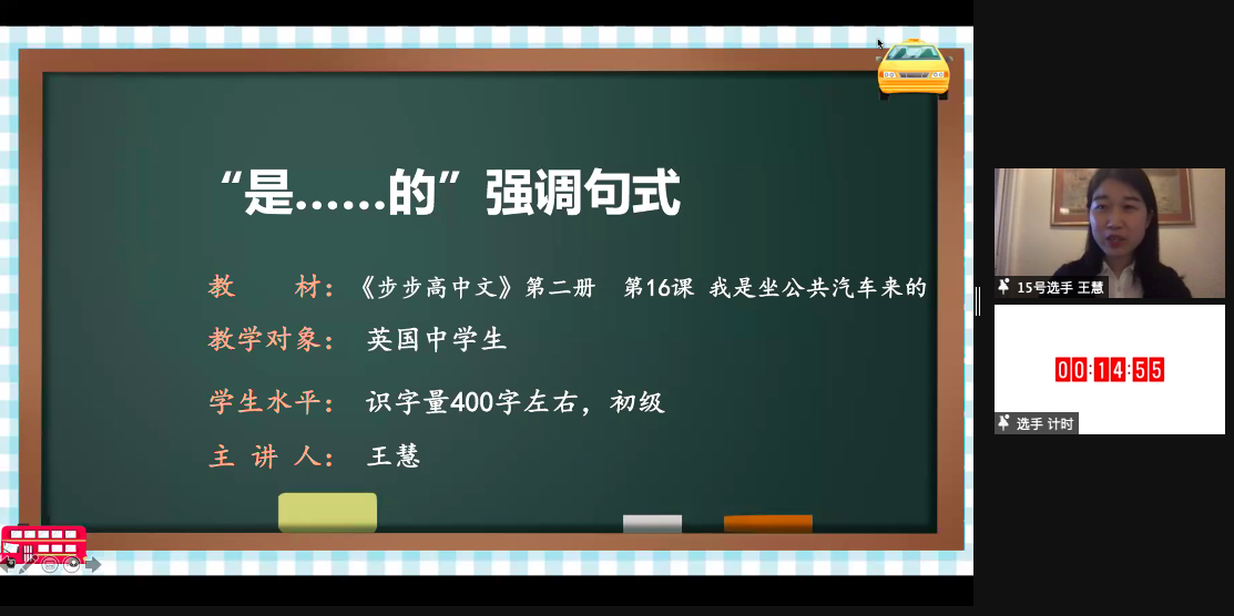 此次教学技能大赛为英国一线汉语教师提供了一个相互交流、切磋、学习的平台,希望通过比赛以赛促教,相互学习,共同进步,提高汉语教学质量。