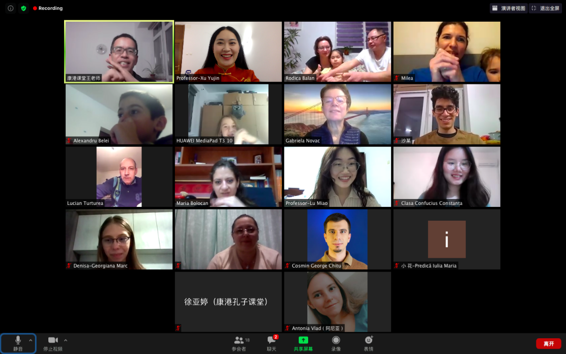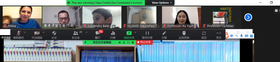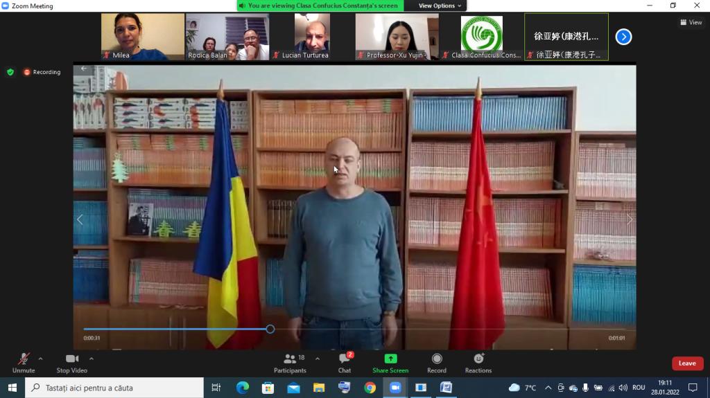 2022年1月28日,罗马尼亚康斯坦察奥维第乌斯大学孔子课堂(简称“康港课堂”)虎年线上新春联欢会成功举办,来自康港课堂的教师、学员、管理人员等通过网络汇聚云端,共贺新春。