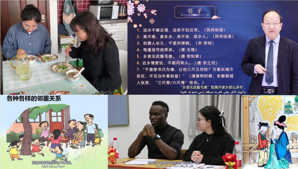 文化的沟通离不开情感的抒发与交流,本次汉语桥线上团组以“讲好中国故事”为目标,立足于中国传统亲朋邻里情,通过阐述平凡而又简单的生活故事,展现中国人的情感生活和表达方式。课程以中国传统邻里文化、现代邻里关系、传统家族文化、现代家庭结构为构架,介绍古今亲邻文化,并列其缘由、究其根本,力求使学生们在学习汉语知识的同时,获得深刻的文化体验。课程包括汉语桥平台视频课程和线上直播课程,根据学生汉语水平分为基础班和提高班,确保教学内容和形式与学生的需求和学习能力相匹配。