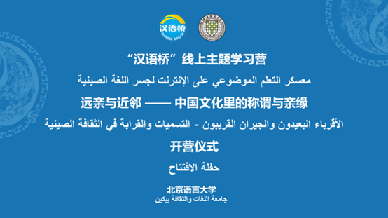 2月8日,农历新年伊始,在2022虎年春节的喜庆氛围中,由教育部中外语言交流合作中心主办、北京语言大学承办的2021汉语桥“远亲与近邻 —— 中国文化里的称谓与亲缘”线上主题学习营顺利开营。北京语言大学孔子学院工作处副处长苏文娟女士、埃及开罗大学孔子学院外方院长李哈布女士、中埃教师代表、“新汉学计划”埃及博士生代表以及参加此次学习营的143名开罗大学学生参加。