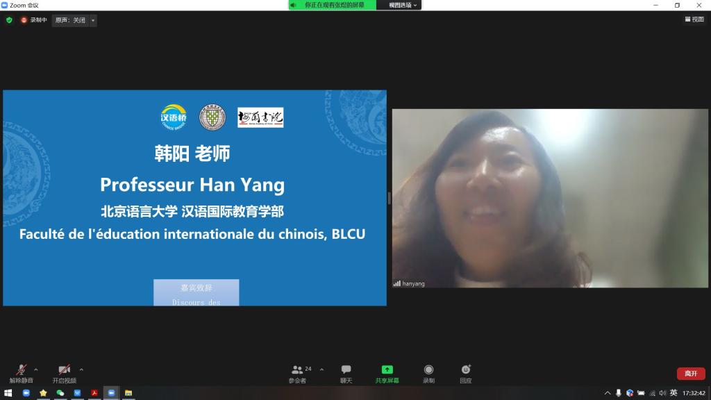 【北京语言大学汉语国际教育学部韩阳老师致辞】