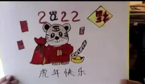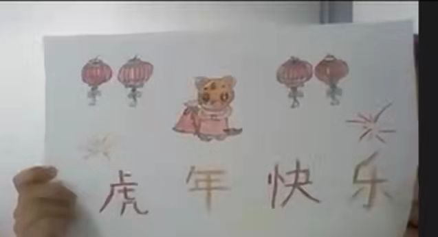 在课上,鄂桐羽、Noe Zhang、金艺天等同学还向老师和同学们展示了自己精心绘制的虎年画报,为大家献上了新年的祝福。