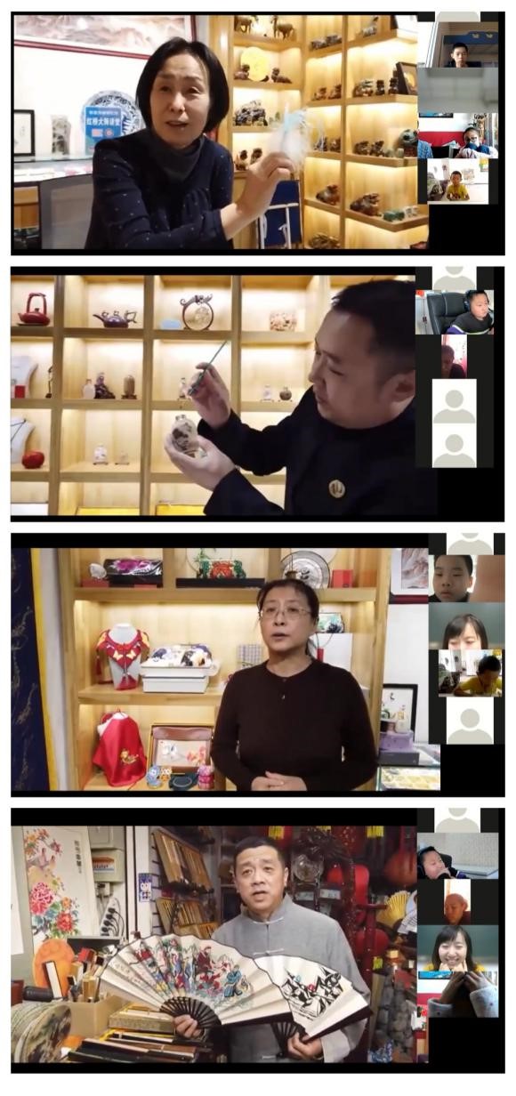 在“科技奥运·云游奥运场馆”中,同学们用科技解码国家速滑馆“冰丝带”并存的美与实力,了解了冬奥会场馆是如何建设的既美观又实用。线上参观红桥市场,跟随非遗传承人——北京戴廉增桃花坞桃花扇刘军、盈君堂内画刘东、京绣阚育新、毽子堂前燕殷文一起,体会奥运纪念品的文化内涵和制作巧思,了解中国传统文化和技艺是如何与冬奥会元素结合。值得一提的是,本次活动的支持单位梅蘭书院是北京冬奥会上唯一一家在会场中为各国元首展示我国非遗技艺的单位。内画、毽子、叶画三种非遗技艺都将在冬奥会场中展示。