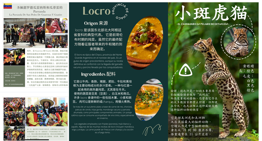同时,中外学员在此期间相聚云端,通过“直播中国”系列直播课程学习五个主题相关文化知识和中文词句,并在第二天的“连线拉美”系列讨论课上与30名北语大学生一同就每个话题内容进行分享和讨论,介绍拉美各国、中国各地的物质文化遗产、民族状况及文化、特色美食文化、非物质文化遗产保护、珍惜动物等。