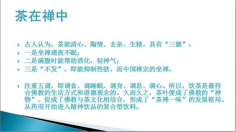 本项目的亮点之一:将“禅茶文化”用通俗的语言传递给中土学生,注重茶之精神的引导,使学员体会中国茶文化中体现的儒释道精神,带领大家感受中西茶文化中的审美追求和生命体验;亮点之二:将茶的养生原理及科学依据以现代科学方式呈现给学员;亮点之三:用佳茗寻踪、温暖记忆等文学主题,把茶的物理形态和精神意义结合在一起,将浓浓的生活气息带入课堂,使学员感受到茶文化与人间烟火的气息,并结合中国传统文化中的节气概念讨论茶的品尝,在有趣的交流中,学员们积极探寻着茶文化在现代人生活中的深层次意义。