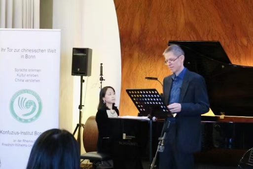 2月17日,波恩孔子学院在波恩钢琴之家成功举办了“中国之声,视听盛宴”之“双重音乐会”的第二场音乐会,主题为 “春与夏”。由国际知名青年钢琴家江瀅(Yin Chiang)和德国著名汉学家马海默博士(Dr. Marc Hermann)为大家带来这一场精彩绝伦的表演。波恩孔子学院德方执行院长叶翰识博士(Dr. Hannes Jedeck)担任主持人。