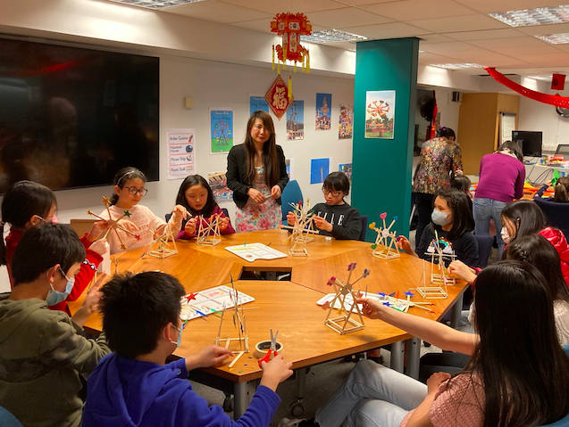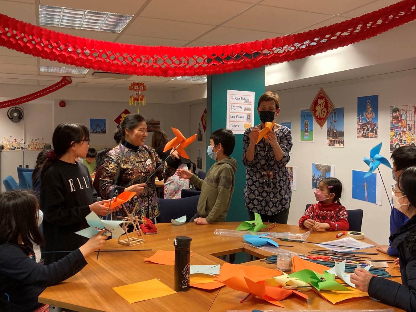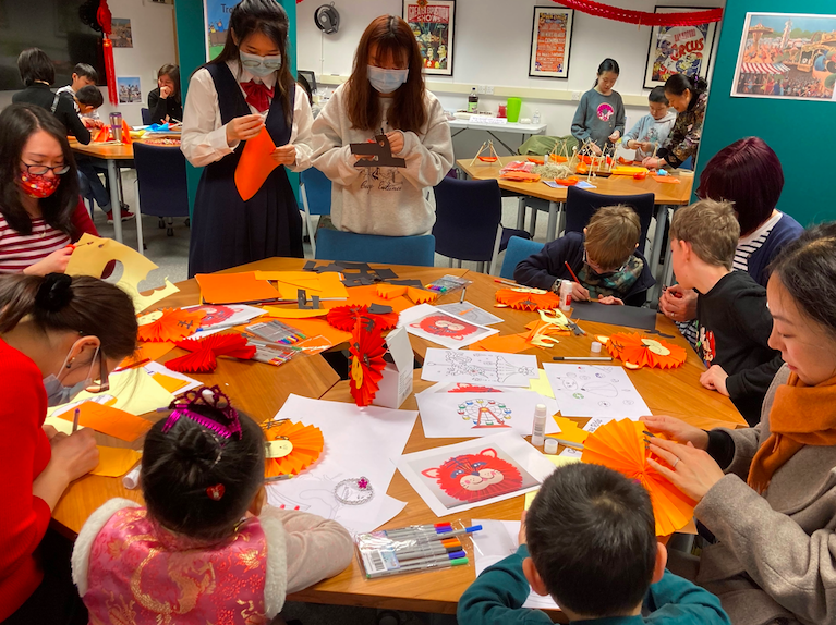 2月15日,正值农历正月十五元宵佳节,又逢当地放半期假,谢菲尔德大学孔子学院受邀与谢菲尔德大学西岸图书馆(Western Bank Library)合作举办假期特别活动欢庆元宵佳节和“探索大学游乐园”——参观工业收藏展、体验手工工作坊。谢大孔院共选派两位指导教师及谢大教育系两位志愿者同学来开展手工工作坊活动,工作坊包含了富有节日气氛的立体灯笼组装、“虎年限定”的团扇虎脸制作、风车制作、木质架构摇摆舟搭建、手绘画等等。在疫情逐渐缓解的情况下,本次线下活动为当地以家庭为单位的参观者提供了一次面对面交流和亲身体验中英文化的良机。