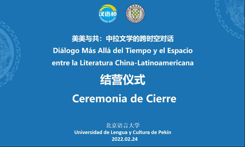 近日,由教育部中外语言交流合作中心主办、北京语言大学承办的汉语桥“美美与共:中拉文学的跨时空对话”线上团组顺利结营。北京语言大学国际教育管理处副处长黄潇潇、北京语言大学教师代表陈金梅老师、中文助理教师以及来自拉美地区的学员100多人参加了结营仪式。