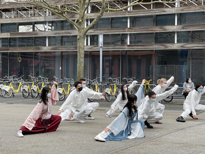 不仅如此,为加大宣传力度、扩大汉语影响,孔院老师带领拉大中文系学生在大学校园表演太极拳和太极扇,吸引了众人驻足欣赏,收获了热烈的掌声。
