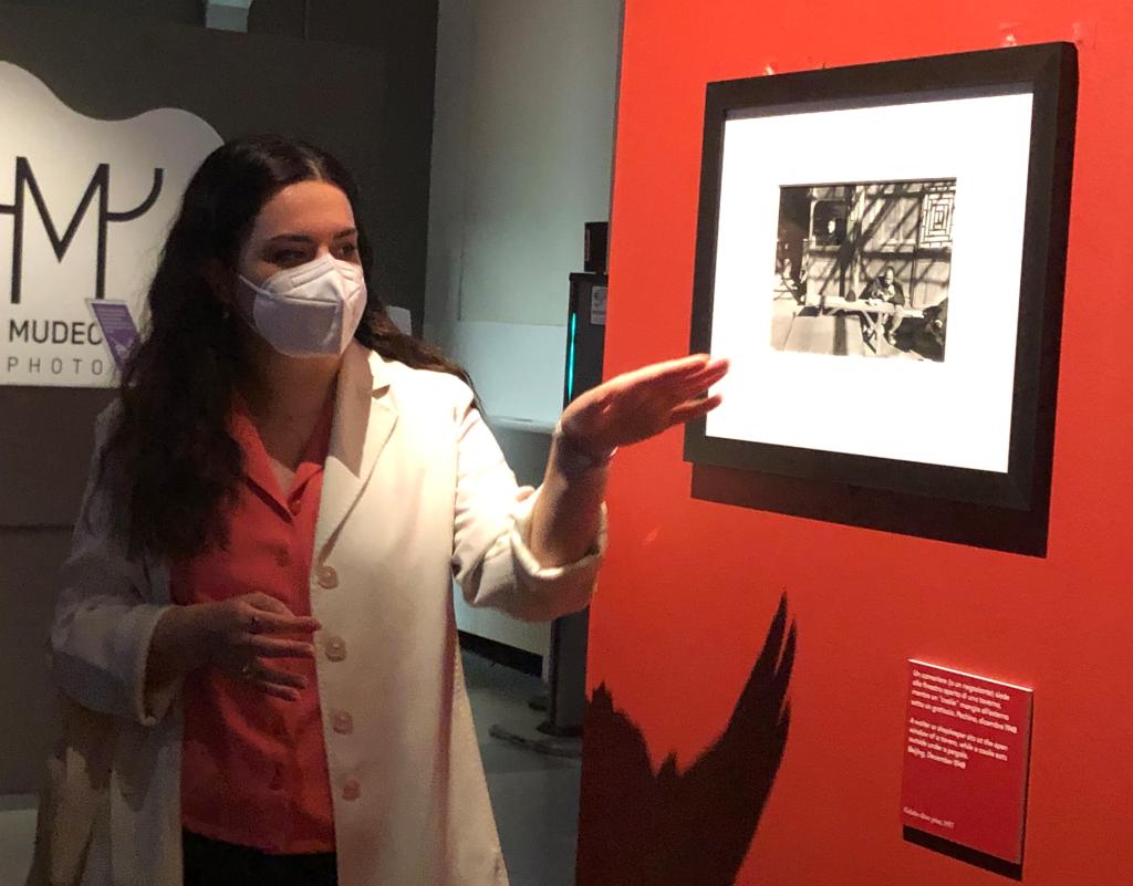 博物馆教育家Giulia Di Nallo老师担任此次活动的讲解任务。她首先简要介绍了新中国成立前后的历史背景,以及布列松在中国的拍摄经历。她谈到,布列松在1948年第一次前往中国,通过10个月的拍摄,目睹并忠实地表现了新中国成立前人民生活的苦难,见证了国民党政府的垮台和新中国的诞生。在中华人民共和国崛起后,布列松作为首位走进新中国的摄影师,于1958年再次访华。他拍摄了有关新中国的大量纪实照片,用镜头为西方世界观察一个新生的东方大国打开了一扇窗户,广受西方读者的欢迎。通过两次中国之旅,布列松对新中国进行了深刻的视觉描述,捕捉了社会中不断变化的日常生活细节。随后,Giulia老师对一些重点作品做了详细讲解。讲解结束后,同学们意犹未尽,纷纷返回展厅起点,再次仔细欣赏每一幅作品。