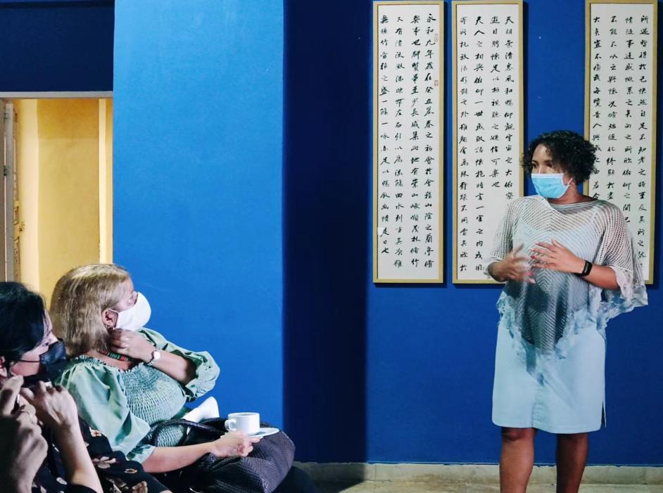 参观孔院图书馆后,各位嘉宾落座报告厅,孔院外方院长Yorbelis Rosell León博士向来访嘉宾介绍了孔院基本情况,主要涉及师资力量、学员构成、课程设置及活动开展等内容。