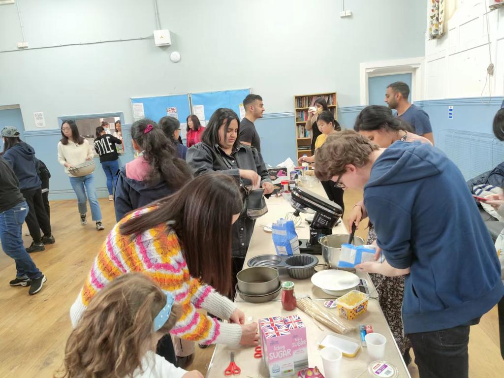 除了当地居民以外,旅居英国的部分中国家庭及留学生也积极参与了本次活动,他们对英国蛋糕制作也展示出了浓厚的兴趣,尤其是现场的小朋友们,在家长的指导下参与其中,不亦乐乎。