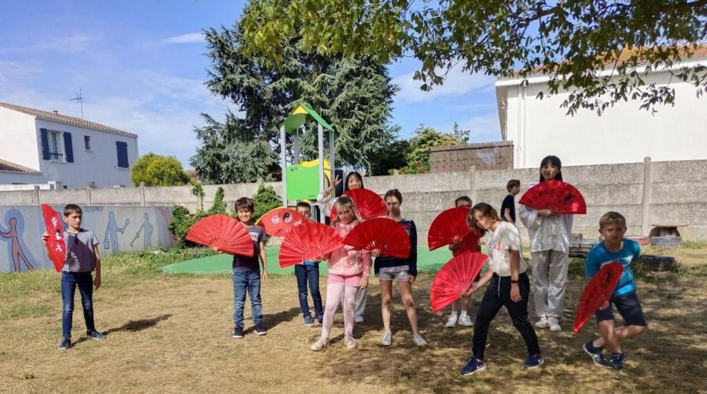 6月1日一大早,Ecole elementaire学校的小学生就等候在大门口迎接志愿者的到来。当志愿者亮出手中的太极扇时,孩子们蜂拥而上,兴致勃勃地跟着老师比划起来,他们渴望的眼神、认真的神态,还有稚气的动作,也深深地感染了志愿者。舞动太极扇是孩子们第一次尝试,这种极富中国元素且趣味性极高的户外活动很受法国儿童的喜爱,9岁男生