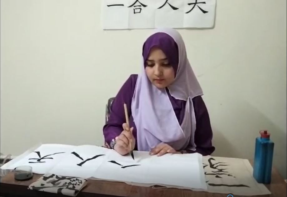 伊斯兰堡孔子学院Moniba Tu Rehman(玫画)书法才艺展示