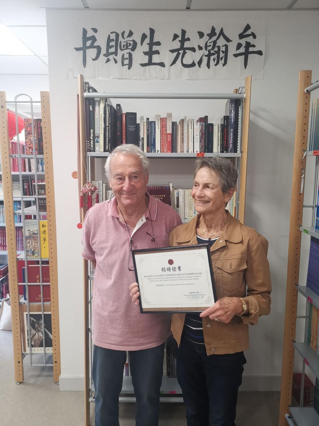 几个月前,牟翰先生的哥哥因病去世。遵从其生前愿望,牟翰先生将其哥哥收藏的210册中文图书全部捐赠给拉罗谢尔孔院。据牟翰先生介绍,他哥哥酷爱汉语和中国文化,曾于上个世纪90年代多次赴中国学习汉语,并收集了很多他喜爱的中国作家的作品,还将其在中国的所见所闻用照片和日记形式记录下来。这些厚厚的相册和日记,是中国90年代社会的真实写照,也表现了一位法国人对中文和中国的拳拳之心。