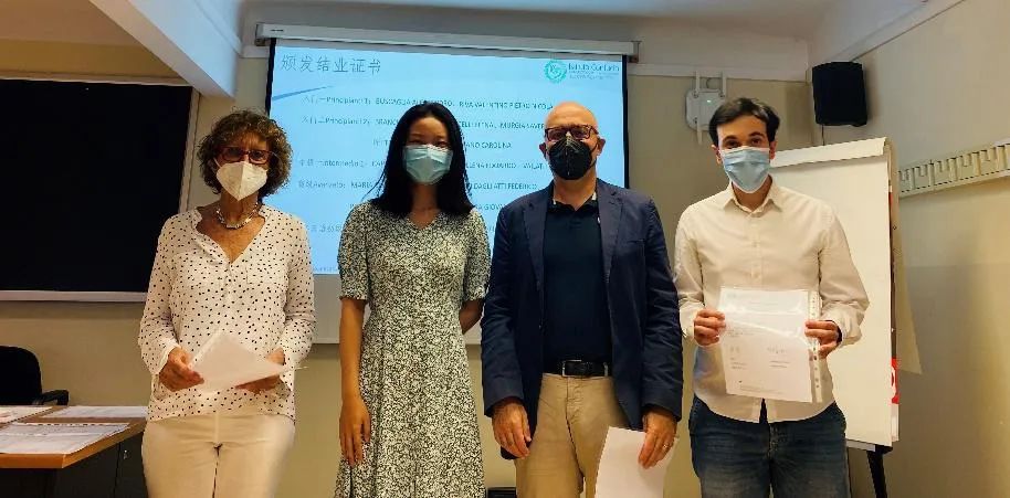 随后任课老师为各班合格学员颁发结业证书,意方秘书安娜为全勤学员颁发奖品,中方院长梁清为优秀学员颁发奖品,期望大家在未来取得更好的成绩。