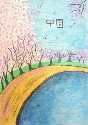 “你好中国2022”旨在通过无国界的绘画艺术,以感性、充满想象力的方式传播中国文化。参赛作品需传达对当代中国、中国古代历史与文化、寓言与传说、杰出人物、自然风情、发明创造、音乐舞蹈艺术的印象与遐想。孔院中级二班学员米格(Miguel Yamil Galindo Mendoza)以一幅承载了对中国风物诗意想象的落英流水图,夺得了本次比赛的冠军。