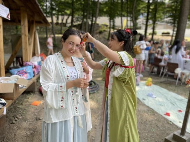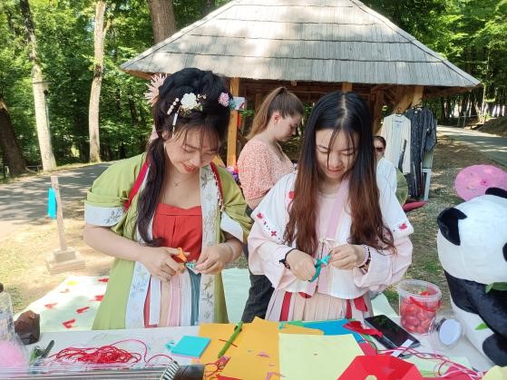 2022年第25届奥林匹克传统手工艺术节于罗马尼亚当地时间2022年7月20至24日当地时间在锡比乌阿斯特拉博物馆(Astra Museum)举办,聚集了罗马尼亚不同地区和城市的手工艺代表团前去参加。锡比乌卢奇安·布拉卡大学孔子学院应邀于7月23日至24日两天参加本次文化活动,孔院老师们身穿传统汉服,向在场观众展示手工剪纸、京剧脸谱、书法、古筝、汉服、筷子、套圈游戏等丰富多彩的中华文化,挂上孔院旗帜、摆上大熊猫玩偶、放上油纸伞,小小的一方场地,精心布置之后显得古色古香,韵味十足,集手工、戏剧、音乐、绘画等多个领域于一体、知识性与娱乐性兼具,吸引了大量的观众前来围观与体验,热闹非凡。