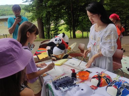 本次文化活动期间,最受欢迎的体验活动非套圈游戏莫属。地上摆满了具有中国特色的文化产品:中国结、熊猫周边、筷子、折扇、各类玩偶等,琳琅满目,异常吸睛,引来一批又一批的游客驻足尝试。一个个五彩缤纷的圈,承载着彩色的快乐,男女老少皆宜,套中的是好运,套不中的是乐趣。