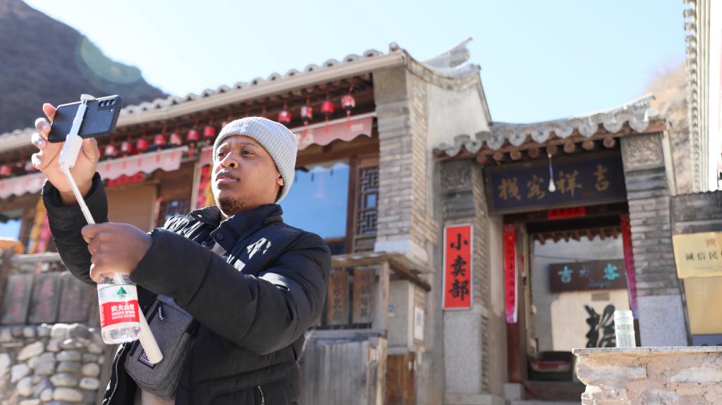 爨底下村依山而建,依势而就,高低错落,四合院错落有致地沿山道层层排列,层层升高。用紫石、青石砌成的小路串联起这个村庄,幽雅古朴的气息扑面而来。德瑞一进村就拿出了手机,开始拍摄视频,他说:“这里的样貌好特别,我想拍下来回去剪辑一下,发给不在中国的朋友们看。”