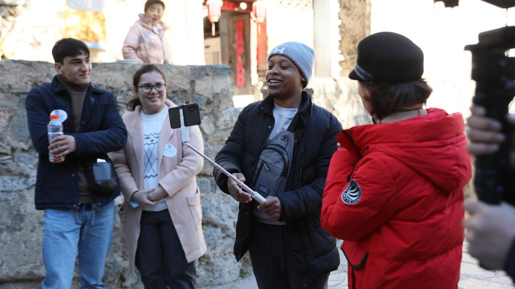 11月7日,跟随来自中央广播电视总台及中央歌剧院的俱乐部导师团,北京语言大学北京书院的四名留学生德瑞(津巴布韦)、李文(俄罗斯)、宇轩(哈萨克斯坦)、阿拉(俄罗斯)通过“汉语桥”俱乐部(广电教培基地站)的实践活动,来到了位于北京门头沟斋堂的爨底下村,实地走访了这片中国北方地区保存较为完整的明清时期古村落,完成了一场社会调研。