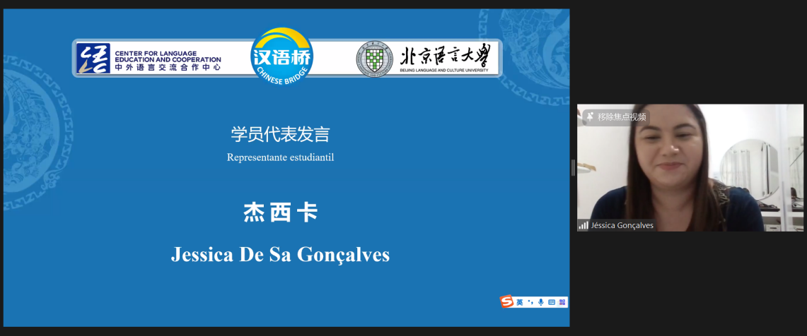 来自1班的学员代表杰西卡同学表示,很感激中外语言交流合作中心和北京语言大学提供了这次学习机会,通过观看长城及长城下的国际村有关的视频和线上课程,对中国的历史文化和现代发展都有了更进一步的认识。