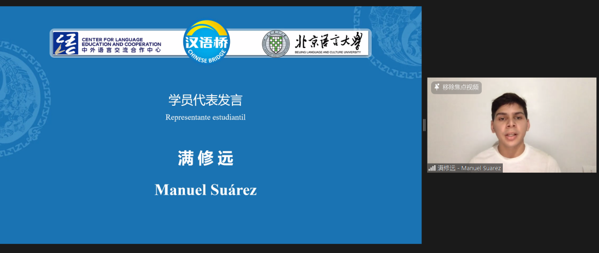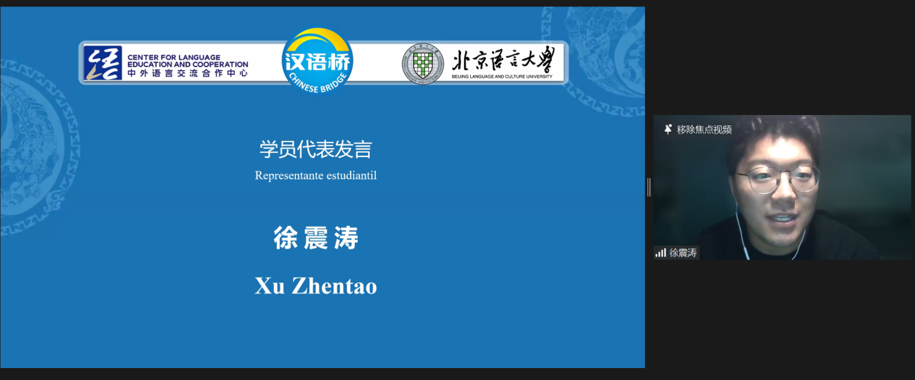 来自中国的学员代表徐震涛表示通过这次课程,提高了用西班牙语介绍中国文化的能力,在学员们的用心分享中看到了世界不同地方的精彩文化。他也深深地感受到了大家对于中国文化的喜爱和学习汉语的热情。