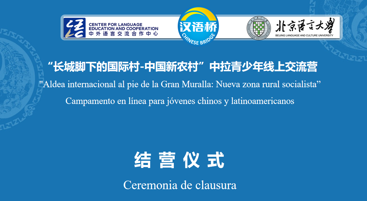 11月25日,由教育部中外语言交流合作中心主办,北京语言大学承办的“长城脚下的国际村-中国新农村”汉语桥主题交流营圆满结束。来自阿根廷、秘鲁、玻利维亚、巴西、多米尼加、古巴、哥伦比亚、哥斯达黎加、墨西哥、美国、委内瑞拉、智利等10多个国家的总计130名营员参加结营仪式,开展了课程回顾、优秀学员代表发言和颁发优秀学员证书等活动。