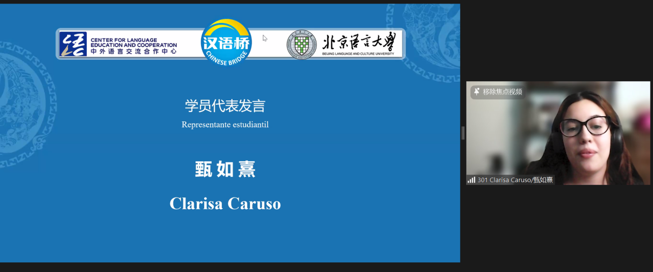 来自4班的学员代表安黎桦同学说,老师热情的讲课风格、充满趣味的学习内容以及来自不同国家汉语学习者的交流分享,给了自己一种全新的学习体验,也让她认识到中拉之间的相同与不同之处。