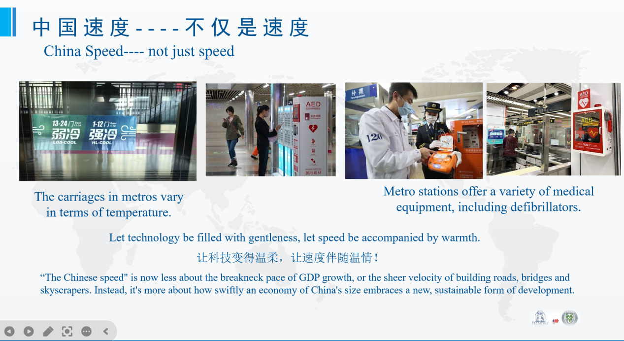 因为时差,教师们往往需要在非正常工作时间授课,但大家总是认真备课、积极投入,保证最佳的授课效果。例如汉语学院的王锐老师在以详实的数据介绍了中国高铁的快速发展后,用生动具体的事例告诉大家“中国速度”不仅是快,更是“让速度伴随温情。”勾画了可信、可爱、可敬的中国形象,得到了中美师生的高度赞许。