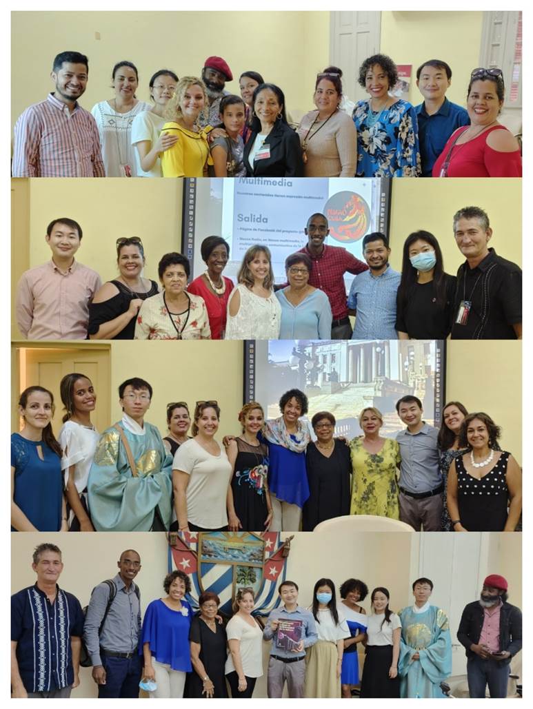 闭幕式现场掌声雷动,众人在恋恋不舍中结束了研讨会。最后,大会负责人给参会者赠送书籍,作为古巴之行的纪念。本次教学研讨会大获成功,为来年第三届拉丁美洲对外西语与对外汉语教学研讨会奠定了良好的基础。