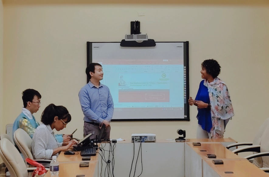 来自哈瓦那大学对外西语系教师Bárbara C. Bécquer Rebaza和Malena Rodríguez Rodríguez分享了语言教学中信息技术手段的运用及跨学科发展的研究成果。来自西班牙格林纳达大学的Isabel Sánchez López博士、德国富特旺根大学的Alejandro Pastor Lara博士,分享了欧洲国家面向中文母语者教授西语时,面临的问题和经验,这对拉丁美洲对外西语教学具有一定借鉴意义。