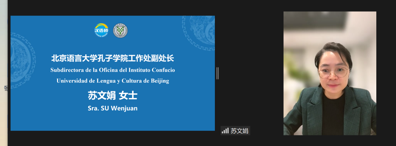 苏文娟对学员的踊跃参与表示热烈欢迎。她说,中国和拉丁美洲虽然相隔万里,但是双方在政治、经济、文化等方面一直保持着良好的交流与合作。随着中拉经贸领域合作的开展,对熟悉中国、知晓汉语的当地人才的需求也将逐步增大。值此中国与尼加拉瓜两国恢复外交关系一周年之际,本次汉语桥活动将为尼加拉瓜与其他拉美学生搭建一个全面了解中拉友好交流合作的平台,希望学员们以此次汉语桥线上团组活动为契机,努力学习中国语言文化,为继续推进中拉友好贡献自己的力量。