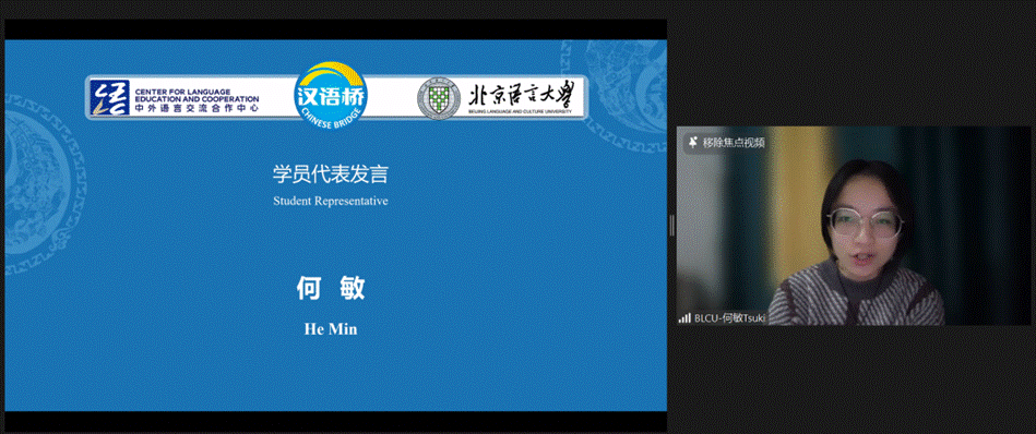 来自中国的学员代表何敏谈到了她的收获,通过老师的讲解,自己了解了以前没有接触到的一些绘画背后的中国文化,同时通过其他国家学员们的用心分享,看到了世界不同地方的精彩文化。并从一个中文老师的角度学习到了讲师们如何讲解绘画中的文化,如何巧妙地将绘画和语言知识结合在一起,以及如何运用多媒体上好一节语言文化课。