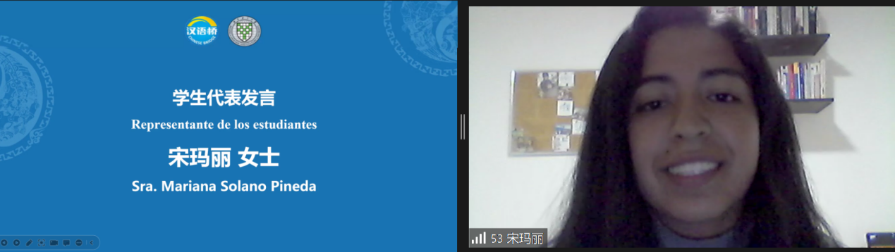 初级2班的方菁雅对老师的认真授课表示感谢!她说,在课程中学习了关于中国和拉丁美洲文化的有趣又丰富的知识,收获很大。
