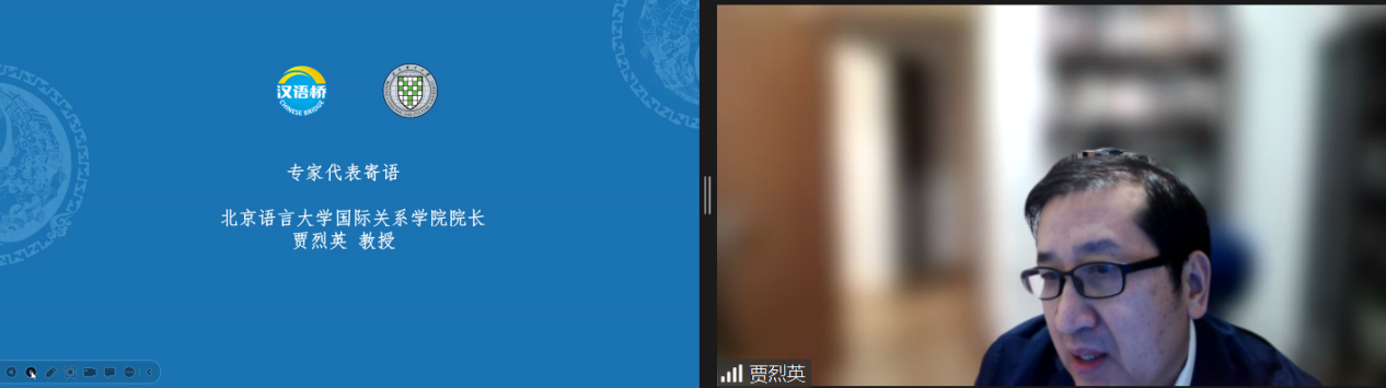 贾烈英院长为世界青年们送上美好寄语。他衷心地希望青年们在疫情时代能够克服困难,即使只能在云端短暂相聚,也要学好语言和文化,加强交流与合作,共同成长进步。