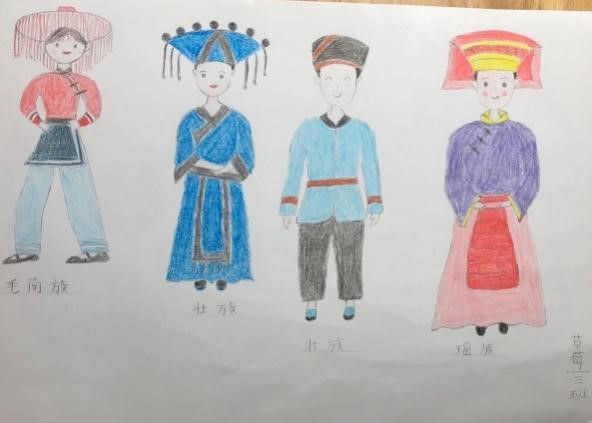 在“‘万里俗同一根’广西多民族传统节日与习俗”这一主题中,学员们学习了三月三、苗年、盘王节、吃新节等广西少数民族传统节日与习俗,了解了少数民族人们丰富多彩的庆祝活动,在互动环节中,同学们也纷纷介绍了本国的少数民族传统节日与习俗,并在课后设计了节日海报。
