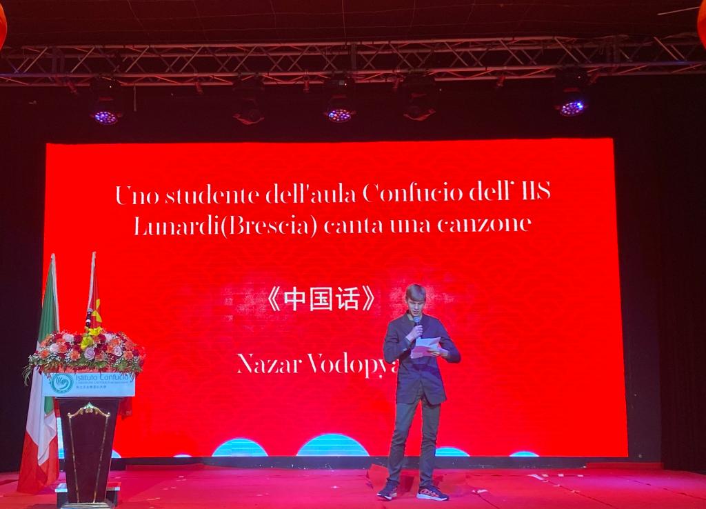 马切林内中学和伦纳迪中学两所孔子课堂的学生Giulia Megaro和Nadar Vodopyan分别带来了歌曲《对不起,我的中文不好》和《中国话》。