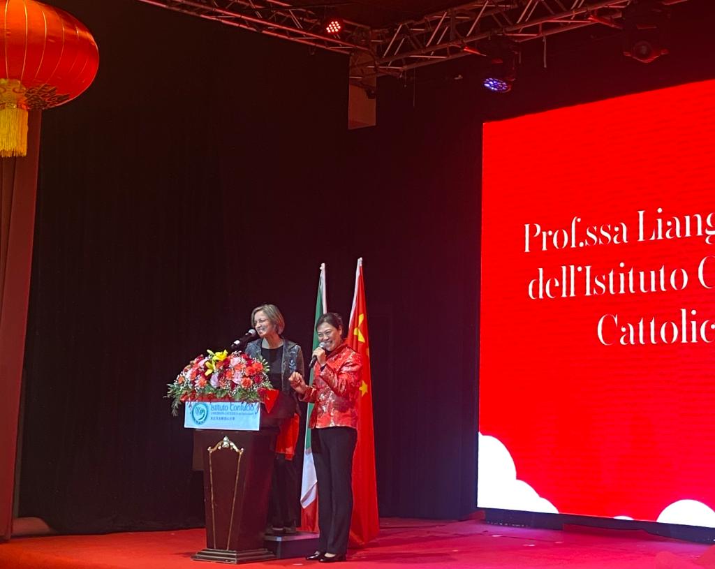 接着,圣心孔院意方院长竺易安教授和中方院长梁清教授一道上台用中意双语对在座的嘉宾们表示了热烈的欢迎,并发表了诚挚的新春贺词。