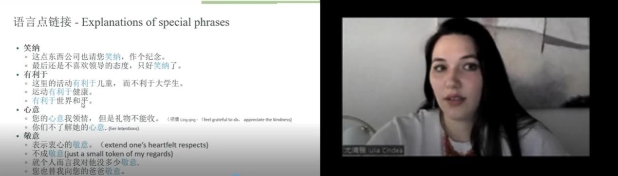 罗马尼亚青年中文教师露莉亚·辛迪亚(Lulia Cindea)在《电商中文》课程中,通过介绍电商经济发展的新业态、中罗电商发展的现状、跨境电商中文工作用语等,让学员掌握了很多实用的汉语表达,同时对电商经济有了初步的认识。