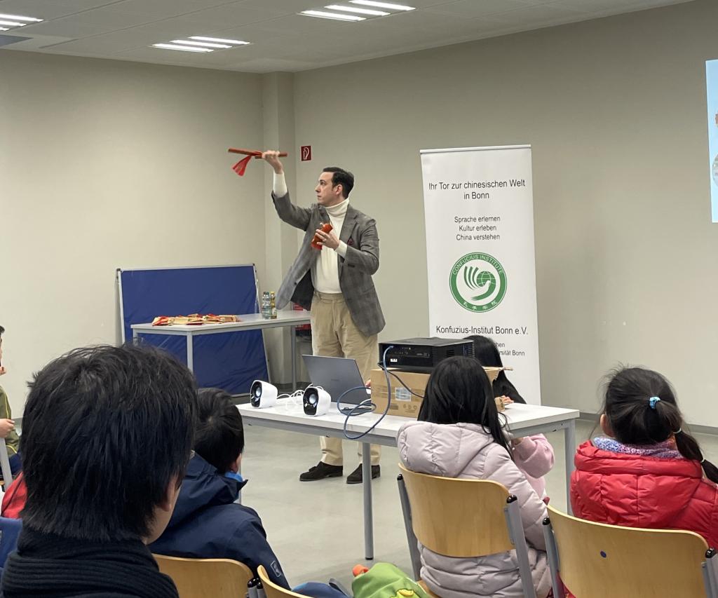 2月11日,由波恩孔子学院主办、国际说唱艺术联盟协办的“快乐快板”课堂活动在波恩华侨中文学校成功举行。本次活动由波恩孔子学院院长助理李玮老师主持并邀请到了国际说唱艺术联盟理事、中国曲艺家协会海外荣誉会员、青年快板演员倪克(Niklas Donath)为现场观众讲解快板的艺术。