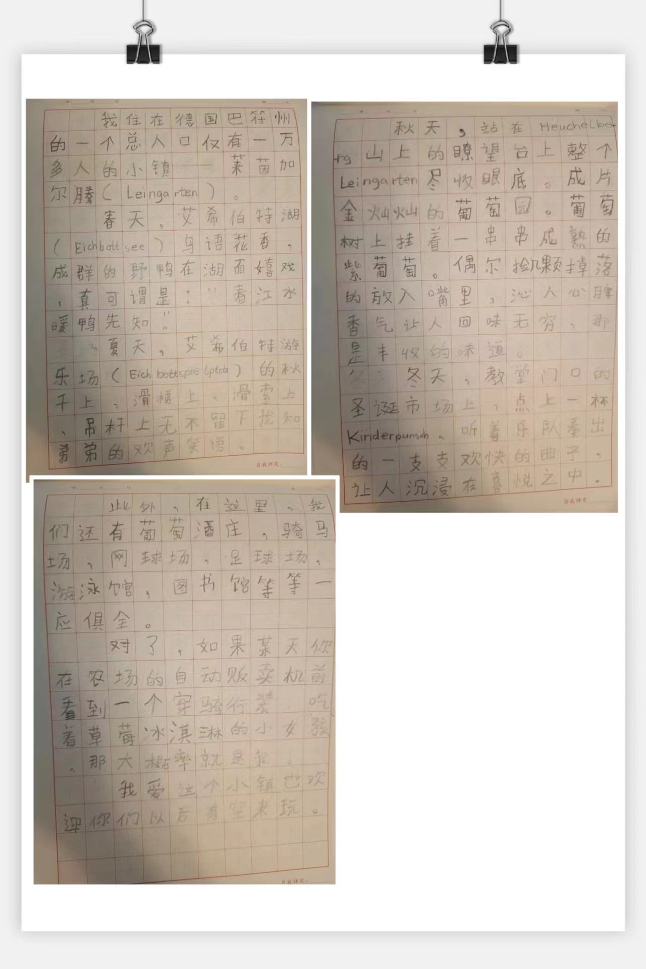 19岁的内奥米(Naomi),用笔尖勾勒出她生活和居住的城市-海尔布隆,这座内卡河畔重要的皇城临河而建、傍水而居,随时可以让人们感到心旷神怡。来自德国九州中文学校的严金薇同学带着对故乡深深的爱,使德国中南部美丽的小城-菲恩海姆映入大家的眼帘,这里莱茵河和内海河静悄悄地流淌,四周山清水秀。伴着一句句动听的汉语,大家一齐穿过哥特式的教堂,来到市中心,行走在充满自由气息的步行街,品尝着夏日的一份清凉冰淇淋。