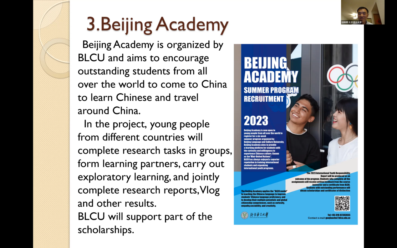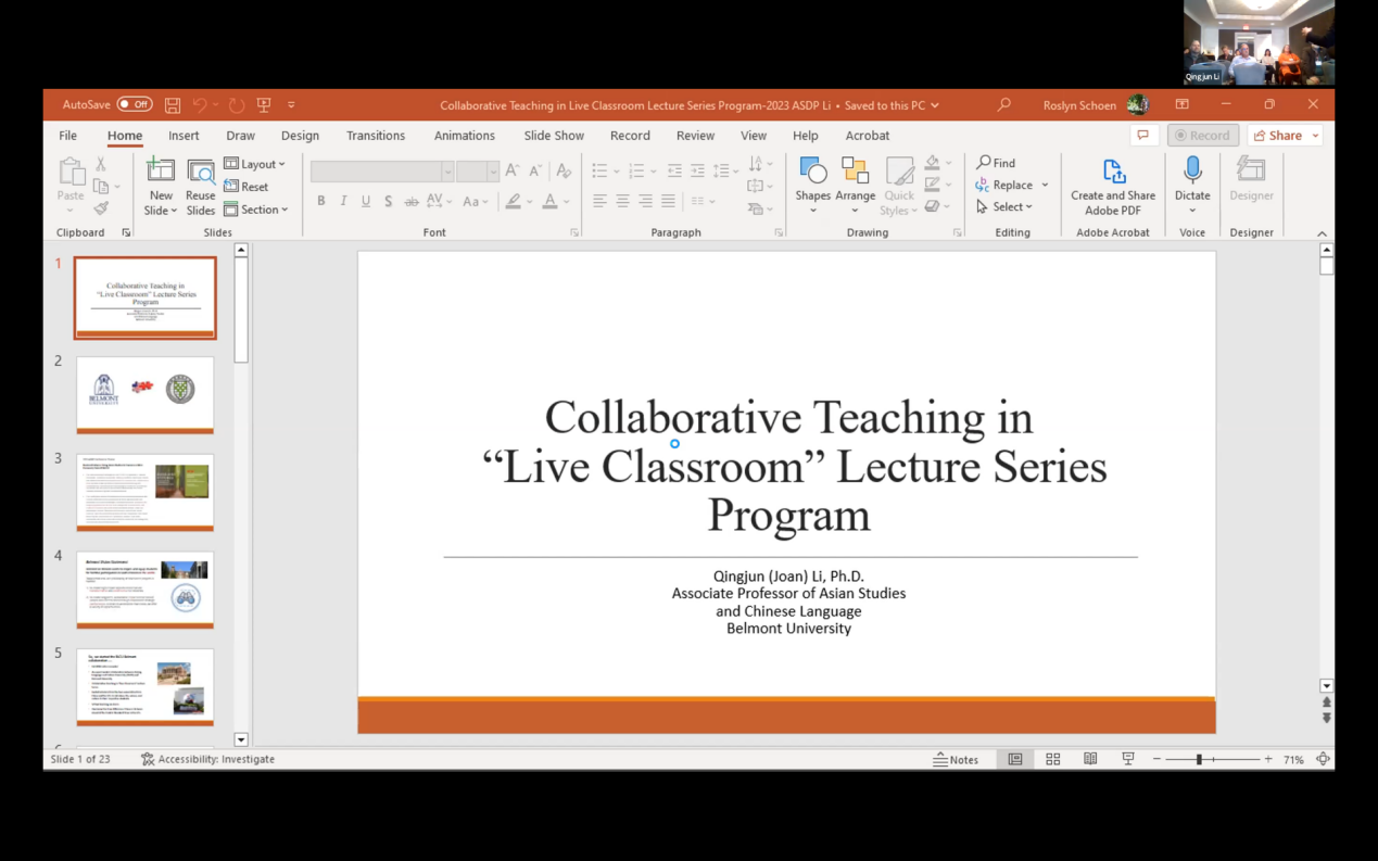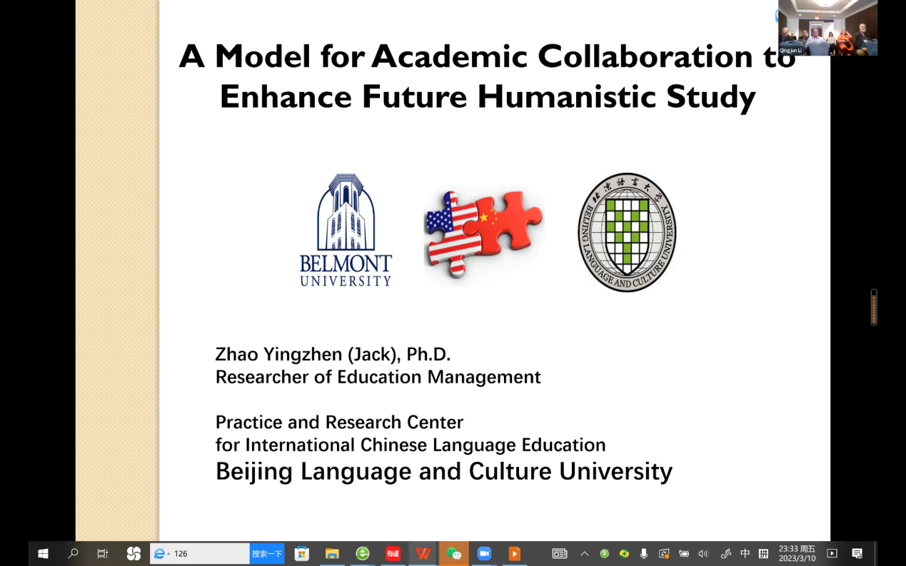 美国中部时间3月9日至11日,美国亚洲研究与发展项目(Asian Studies Development Program,ASDP)30周年年会在密苏里州的堪萨斯城举行,年会主题是“富有活力的未来:用亚洲研究来展望一个更人道的共享世界(Resilient Futures: Using Asian Studies to Envision a More Humanely Shared World)。来自美国东西方研究中心和亚洲研究与发展项目700多家成员单位的60多名代表参加了小组汇报。我校国际中文教育研究与实践基地研究员赵映振与美国贝尔蒙特大学(Belmont University)亚洲研究中心主任张仁宁(Dr.Ronnie Littlejohn)教授和李庆军(Dr.Li Qinjun)副教授在教学组汇报了合作开展的“汉语桥”线上团组项目:中国印象——中美大学生交流营的有关情况,推介了即将开展的2023年北京书院项目,得到与会人员的关注。